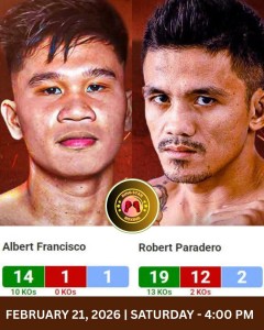 ROBERT “Ingo” Paradero of Bukidnon got his rematch against Albert Francisco of Zamboanga City on February 21 and will fight for the vacant Philippine Boxing Federation flyweight title at the Mayor Vitaliano